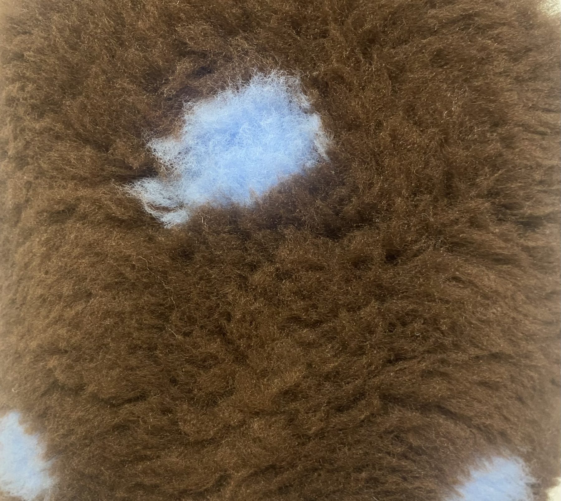 Deilig mykt vetbed i brunt med blå prikker.